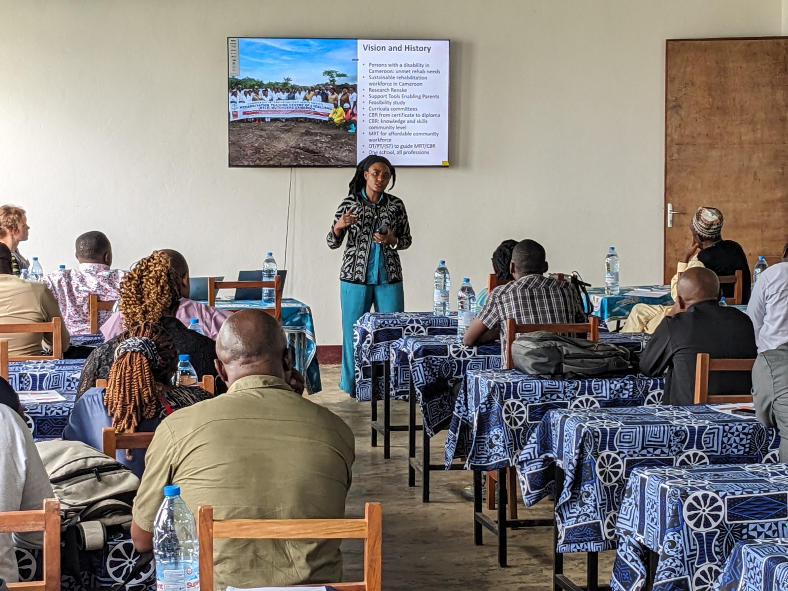 Angelique, a founding member of the rehabilitation training program in Cameroon, returned to provide technical support four years after the program’s inception. Her visit aimed at achieving several key objectives, including helping course heads identify common curriculum elements, establishing Practice Rooms or Skills Labs, and exploring the production of local toys and assistive devices at the Advanced Vocational Rehabilitation Center in Limbe.